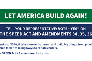 Today Congress decides whether it’ll be easy or hard to build in the US. Tell your Representative Vote YES on SPEED Act + Amendments 34/35/36!