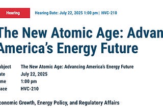 My testimony to the House Oversight Committee on “The New Atomic Age: Advancing America’s Energy Future.”